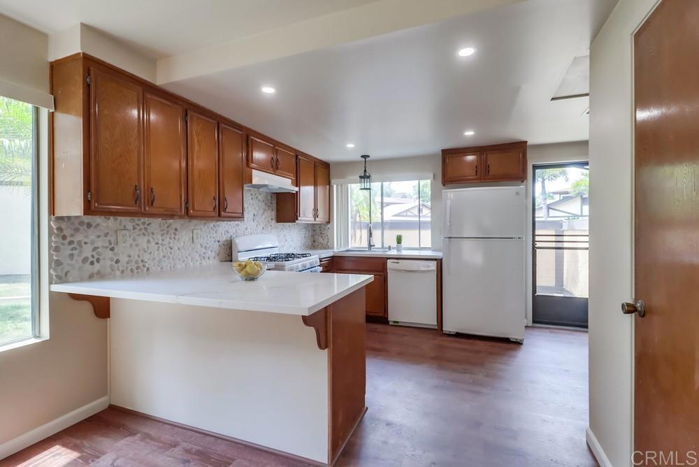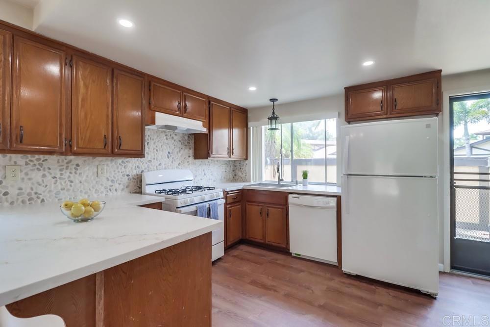 Welcome to your dream home in Chula Vista! This stunning 2-bedroom, 2-bathroom condo offers 1,335 square feet of beautifully updated living space in one of San Diego County's most desirable communities. As you enter, you'll find a spacious open-concept living area that seamlessly connects the living room, dining area, and kitchen. The living room is filled with natural light from large windows that offer a picturesque view of the lush backyard. This is the perfect spot to relax or entertain friends. The kitchen is a chef's delight, featuring brand-new countertops that add elegance and functionality. Whether you're preparing a gourmet meal or a quick snack, you'll appreciate the ample counter space and modern appliances. The primary bedroom is a true retreat, offering ample space for a king-size bed. The ensuite bathroom has been tastefully updated with new countertops and fixtures. The second bedroom is equally spacious and versatile, ideal for a guest room, home office, or children's room. The second bathroom also boasts new countertops and modern finishes. One of the standout features of this condo is its unique layout with only one shared wall, providing extra privacy and tranquility. You'll also love the outdoor spaces. The backyard is a serene oasis perfect for relaxing, or hosting barbecues. The front patio is an inviting space to enjoy your morning coffee. Living in Chula Vista offers numerous benefits and attractions. This condo is conveniently located close to a variety of shopping and dining options. Whether you're looking for a casual meal or a fine dining experience, you'll find plenty of restaurants to choose from. Shopping enthusiasts will appreciate the proximity to popular retail centers. One of the most exciting developments in the area is the new waterfront being built in Chula Vista. This ambitious project promises to bring even more amenities and attractions to the community, including parks, recreational areas, and entertainment venues. Imagine strolling along the waterfront promenade, enjoying scenic views, and participating in community events at the new amphitheater. The waterfront will also feature a mix of retail and dining options, making it a vibrant hub for both residents and visitors.
